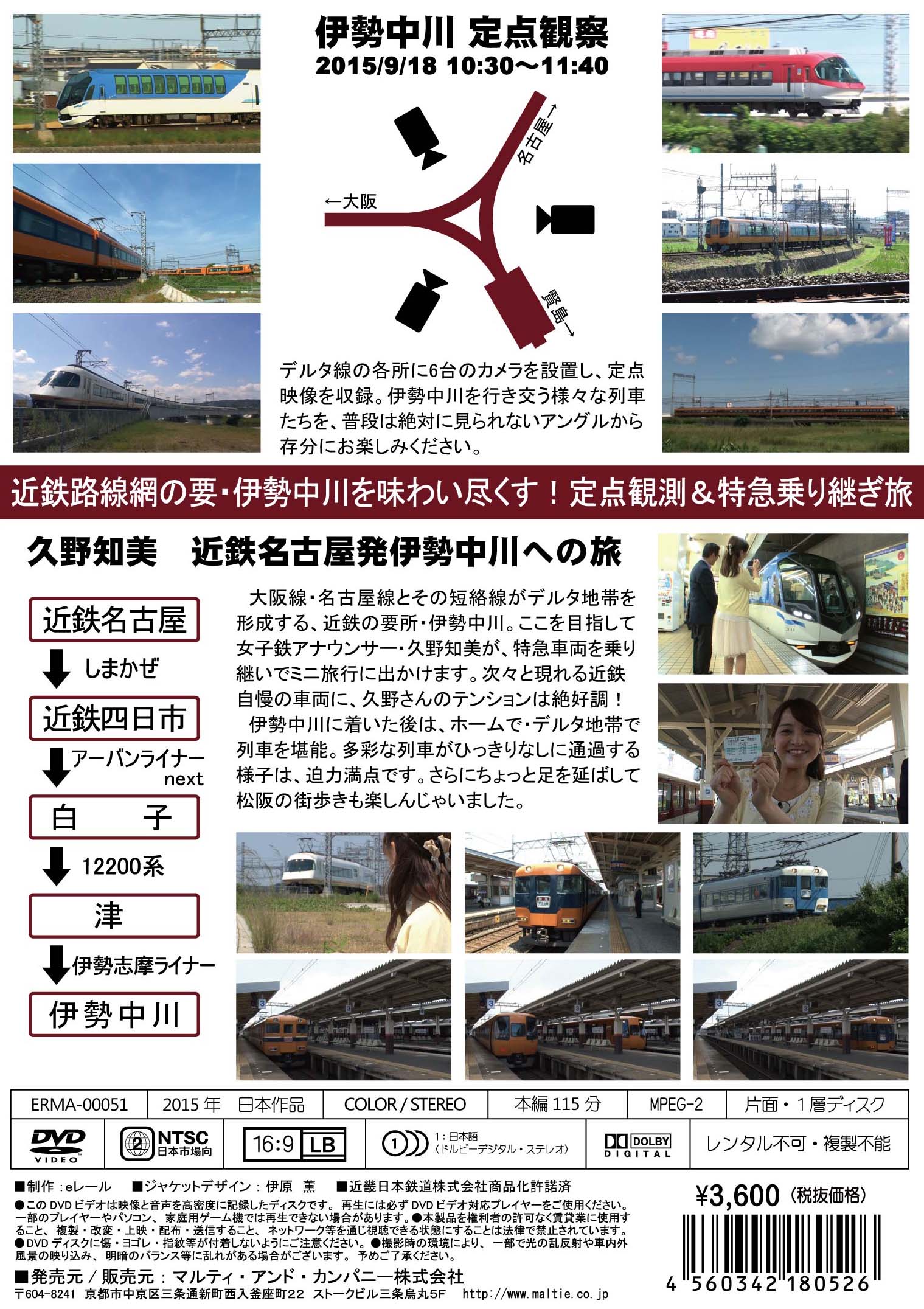 近鉄大阪線・名古屋線・山田線の交差点・伊勢中川。大阪名古屋間をショートカットで結ぶ中川短絡線をクローズアップし、4台のカメラで、賢島方面⇔名古屋方面、賢島方面⇔大阪京都方面を行き来する列車を収録。